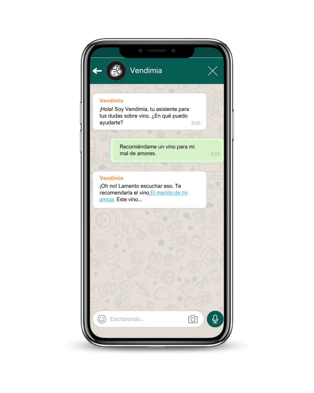 Olvídate de catas aburridas y etiquetas confusas: aquí el vino es una fiesta. VendimIA es el winechat que te entiende. Chatea por Whatsapp y compra tu vino sin complicaciones desde nuestro catálogo.